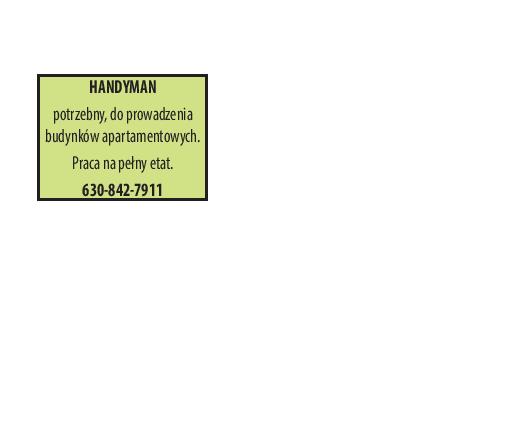 HANDYMAN potrzebny, do prowadzenia budynków apartamentowych. Praca na pełny etat. 630-842-7911