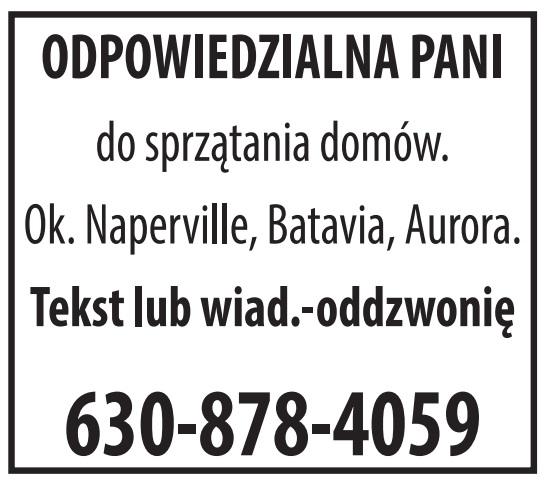 do sprzątania domów. Ok. Naperville, Batavia, Aurora. Tekst lub wiad.-oddzwonię 630-878-4059