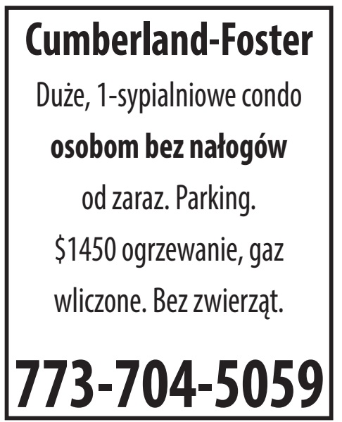 CUMBERLAND-FOSTER 1-sypialniowy garden apartment. IRVING PARK-AUSTIN 1-sypialniowe mieszkanie na 2. piętrze. Bez zwierząt. 773-220-7747