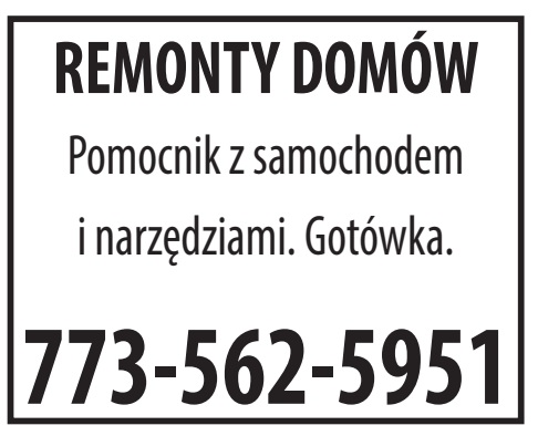 (caulking), odnawiania balkonów oraz POMOCNIK potrzebni. 708-557-2807