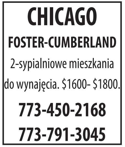2-sypialniowe mieszkania do wynajęcia. $1600- $1800. 773-450-2168 773-791-3045