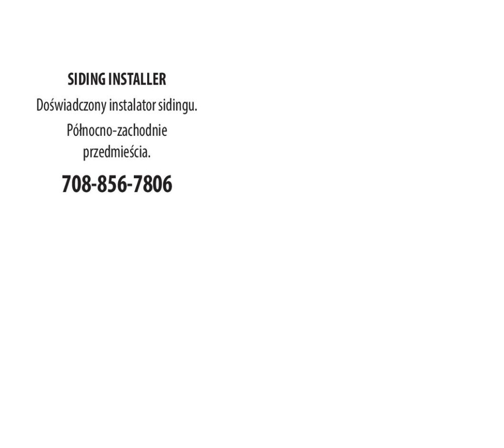 SIDING INSTALLER Doświadczony instalator sidingu. Północno-zachodnie przedmieścia. 708-856-7806