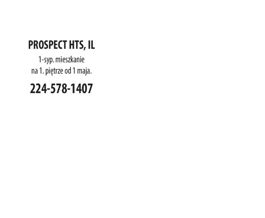 PROSPECT HTS, IL 1-syp. mieszkanie na 1. piętrze od 1 maja. 224-578-1407
