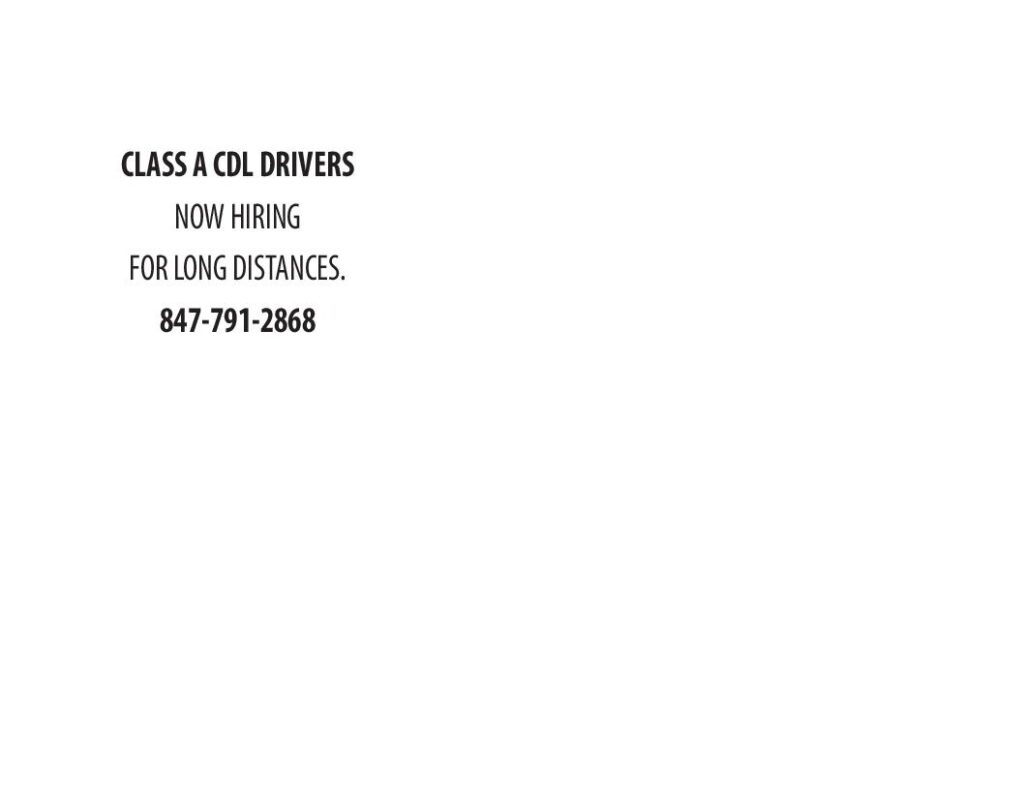 CLASS A CDL DRIVERS NOW HIRING FOR LONG DISTANCES. 847-791-2868