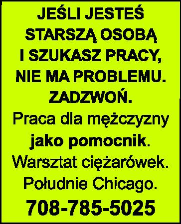JEŚLI JESTEŚ STARSZĄ OSOBĄ I SZUKASZ PRACY, NIE MA PROBLEMU. ZADZWOŃ. Praca dla mężczyzny jako pomocnik. Warsztat ciężarówek. Południe Chicago. 708-785-5025