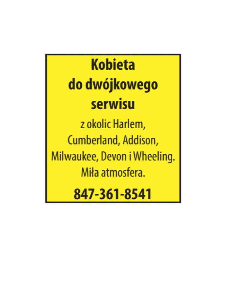 DELI 4 YOU W NORRIDGE, IL ZATRUDNI OSOBY NA DZIAŁ: - CUKIERNICZY (BAKERY) - WYDAWANIE GORĄCYCH POTRAW Pełny lub pół etatu. OFERUJEMY: - Dobre wynagrodzenie - Płatne wakacje - Ubezpieczenie zdrowotne - Możliwość dodatkowych godzin Proszę zgłaszać się osobiście: 8 am - 3 pm Pytać o Dawid […]