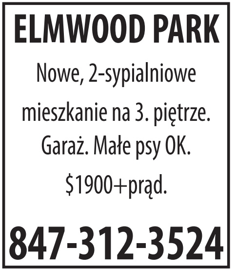 2-sypialniowy apartament do wynajęcia. Bez zwierząt. 847-691-6267