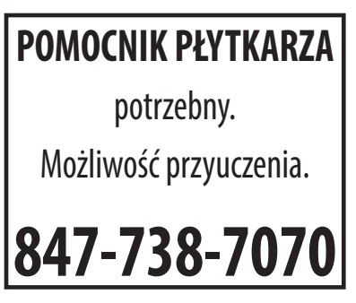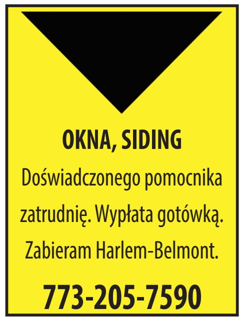 Doświadczonego pomocnika zatrudnię. Wypłata gotówką. Zabieram Harlem-Belmont. 773-205-7590