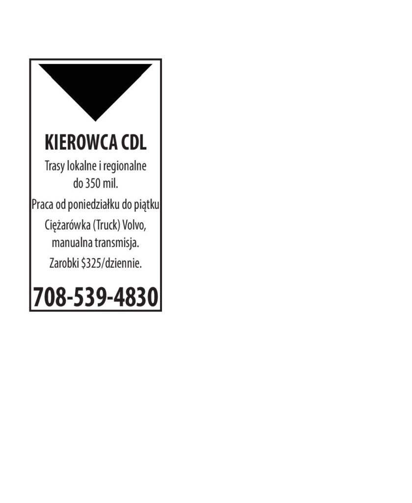 KIEROWCA LOKALNY CDL "A" FIRMA TRANSPORTOWA W ADDISON, IL ZATRUDNI KIEROWCÓW LOKALNYCH. DOŚWIADCZENIE I JĘZYK ANGIELSKI WYMAGANE. WARSZTAT NA MIEJSCU. DRY VAN. 50-70 GODZ/TYGODNIOWO. PO WIĘCEJ INFORMACJI PROSZĘ DZWONIĆ: 708-890-5586, ARTUR