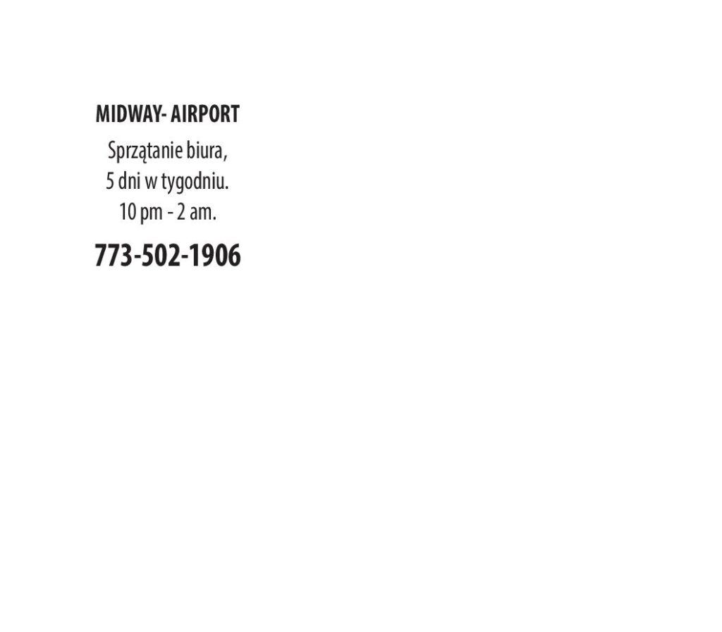 na różne dni z ok. Chicago, Arlington Hts i Niles. Dobre warunki pracy, wczesne powroty, bardzo miła atmosfera. 847-361-8541