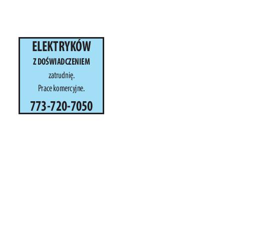 ELEKTRYKÓW Z DOŚWIADCZENIEM zatrudnię. Prace komercyjne. 773-720-7050