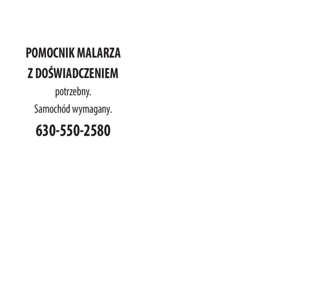 POMOCNIK MALARZA Z DOŚWIADCZENIEM potrzebny. Samochód wymagany. 630-550-2580