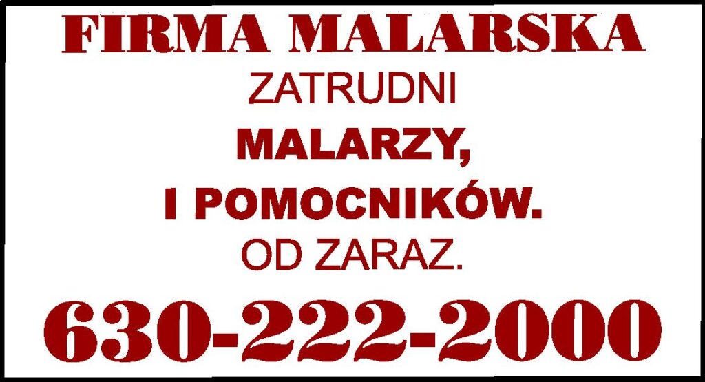 FIRMA MALARSKA ZATRUDNI MALARZY I POMOCNIKÓW. OD ZARAZ. 630-222-2000