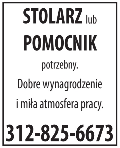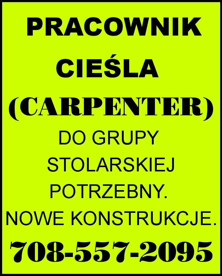 PRACOWNIK-CIEŚLA (CARPENTER) DO GRUPY STOLARSKIEJ POTRZEBNY. NOWE KONSTRUKCJE. 708-557-2095