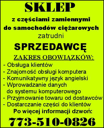 Pracownika z doświadczeniem przyjmę. 773-501-0873