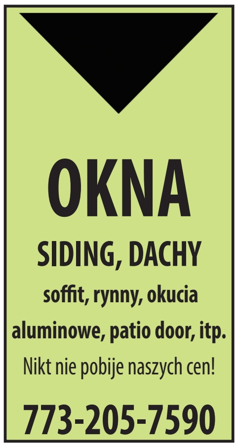 OKNA SIDING, DACHY soffit, rynny, okucia aluminowe, patio door, itp. Nikt nie pobije naszych cen! 773-205-7590