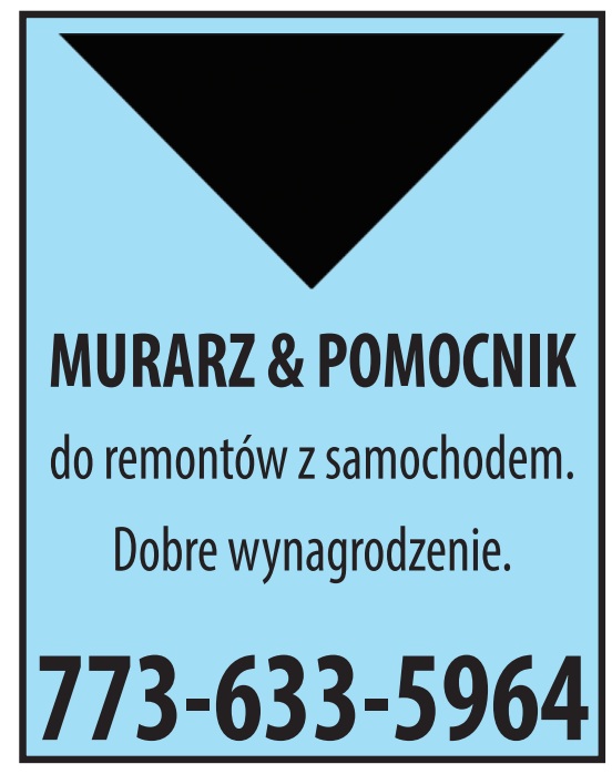MURARZ & POMOCNIK potrzebni. OGÓLNE PRACE BUDOWLANE Pomocnika zatrudnię. Firma mile widziana. 708-539-7997